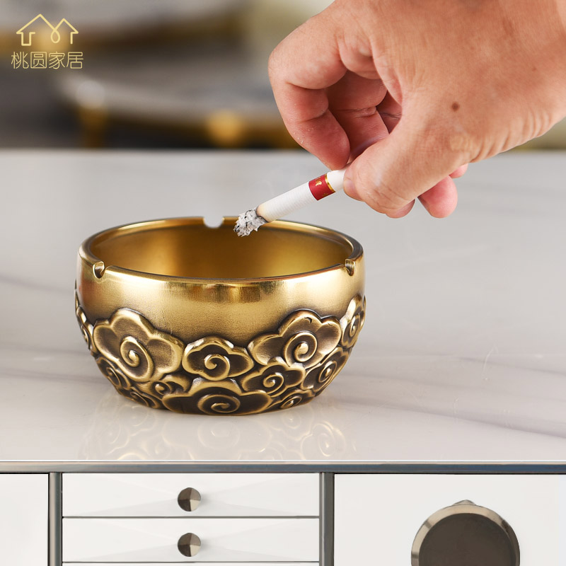 黄铜烟灰缸家用客厅祥云招财缸新中式办公室创意个性潮流复古烟缸