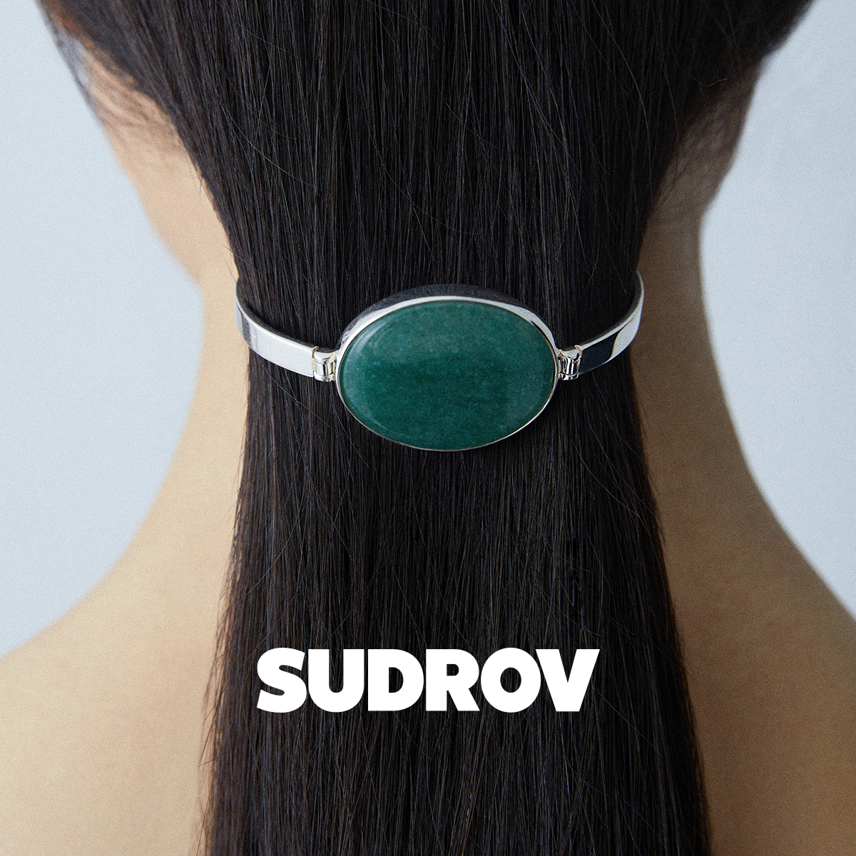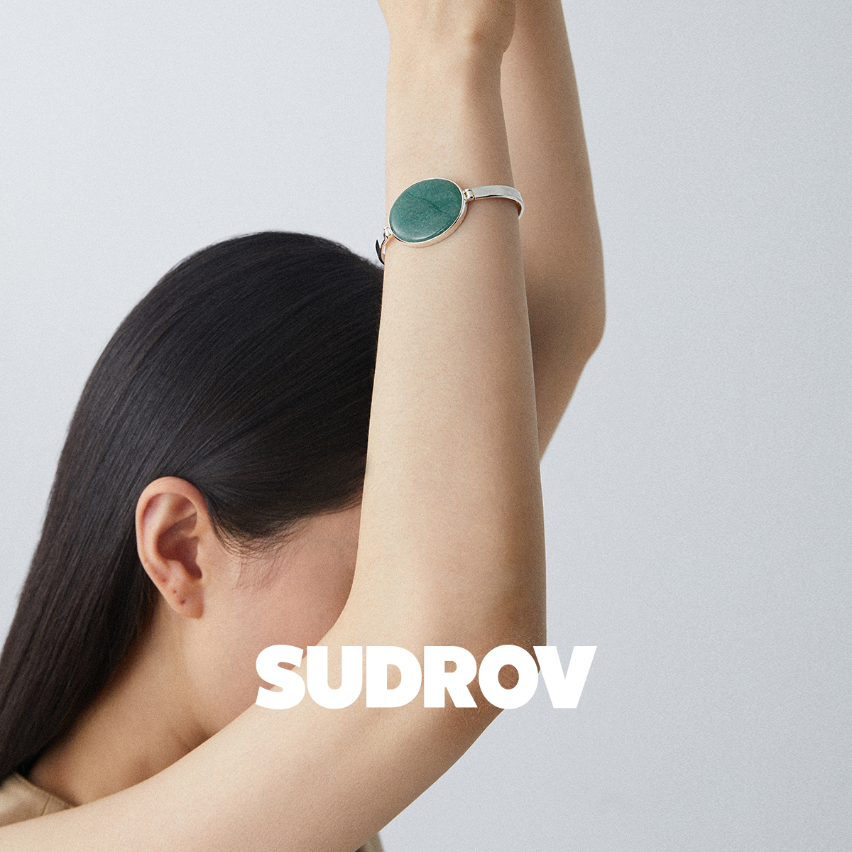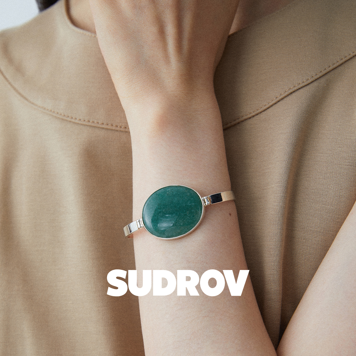 SUDROV素觉手镯女小众设计轻奢东陵玉宝石银镯子送女友生日礼物