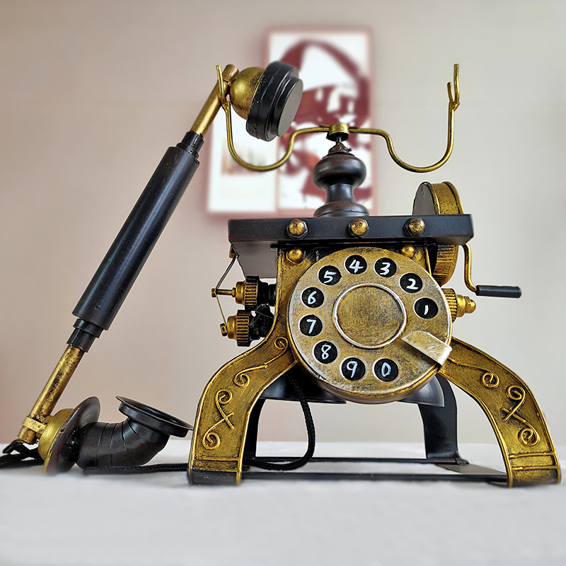 欧式铁艺复古电话机模型摆件酒吧网咖餐厅创意家居装饰品摄影道具