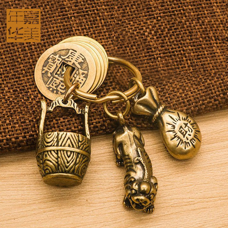 纯铜葫芦一桶金挂件钥匙扣福桶 朱砂招财貔貅平安生肖虎猪鼠复古