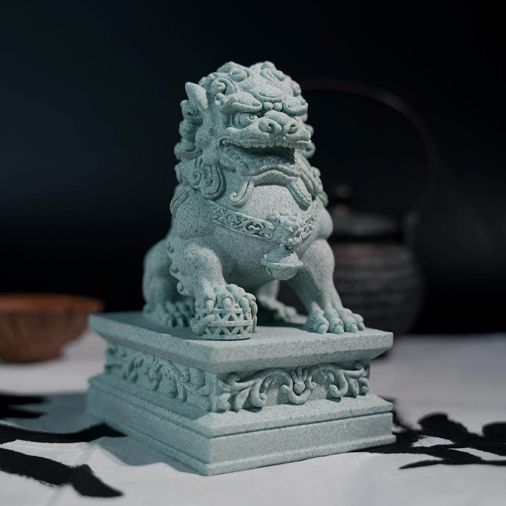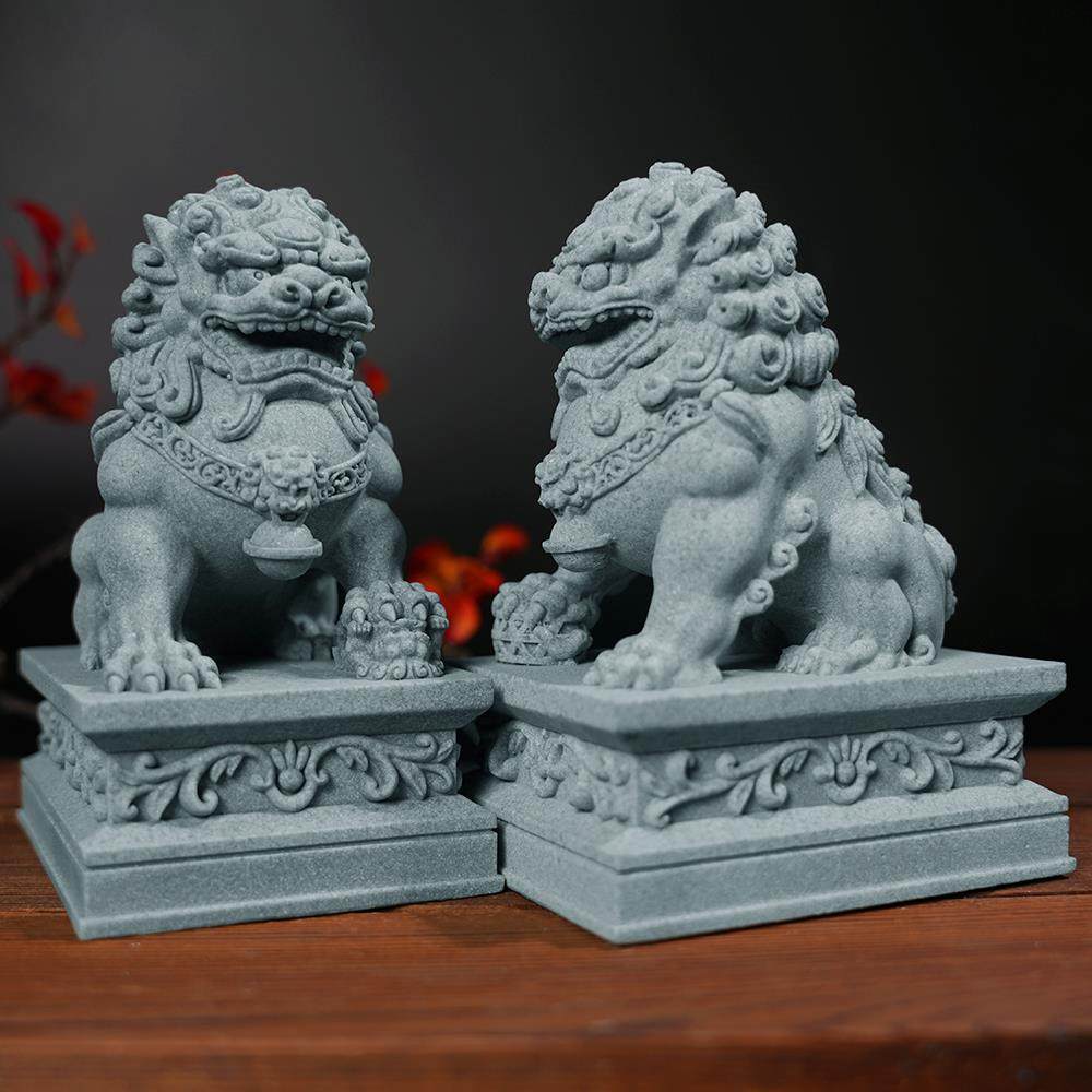 石狮子小摆件一对镇宅看门石雕喜狮麒麟茶宠鱼缸造景桌面装饰礼物
