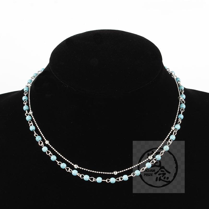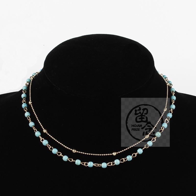 。Accessories fashion multi-layer Necklace round bead Turquo