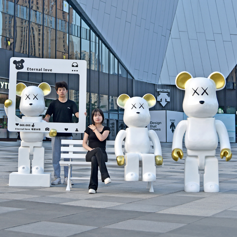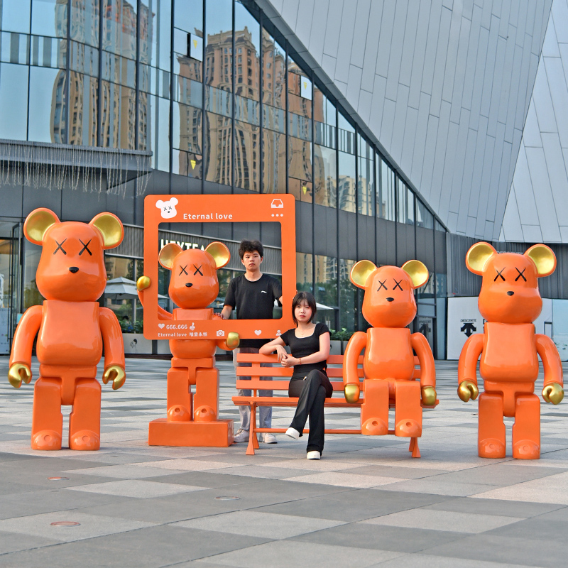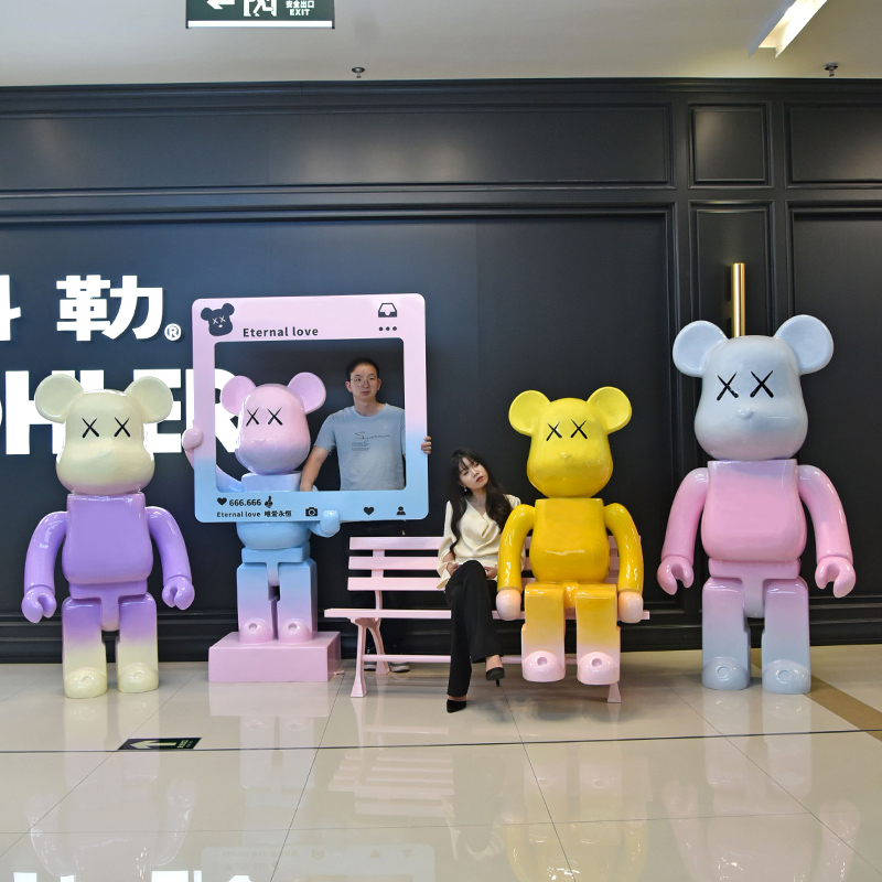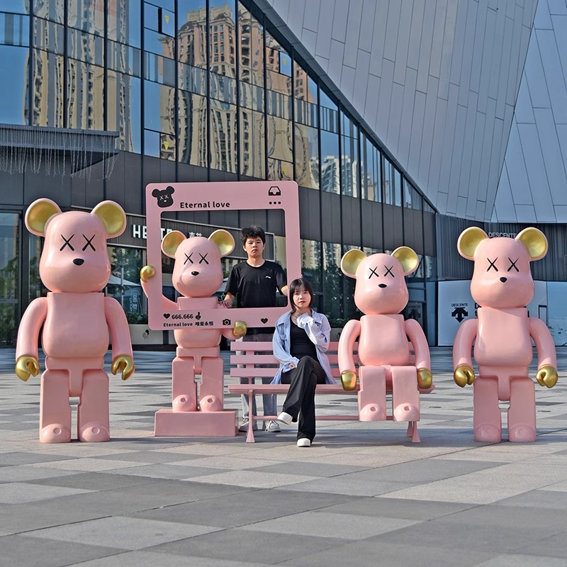 卡通粉色积木熊雕塑玻璃钢暴力熊大摆件网红打卡拍照商场美陈装饰