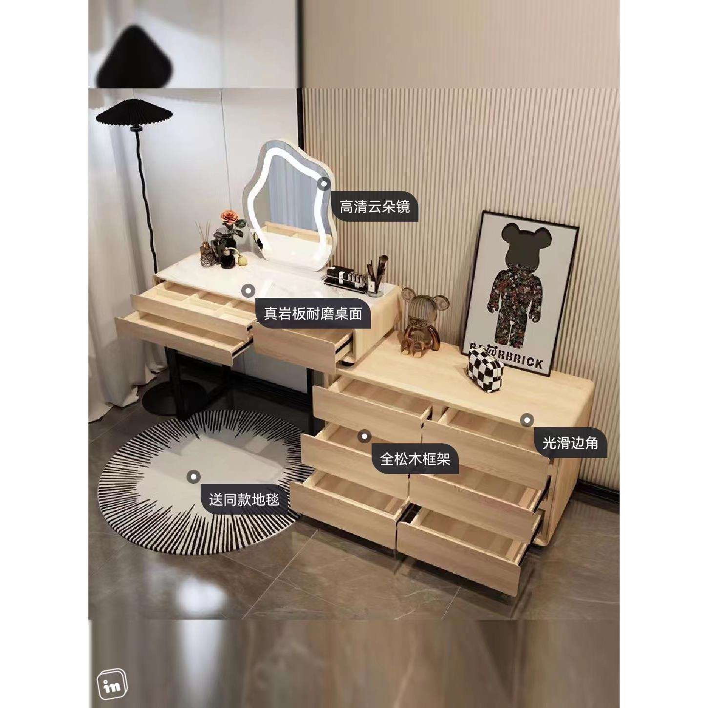 2023新款实木岩板卧室梳妆台奶油风斗柜现代简约化妆台一体化妆谚