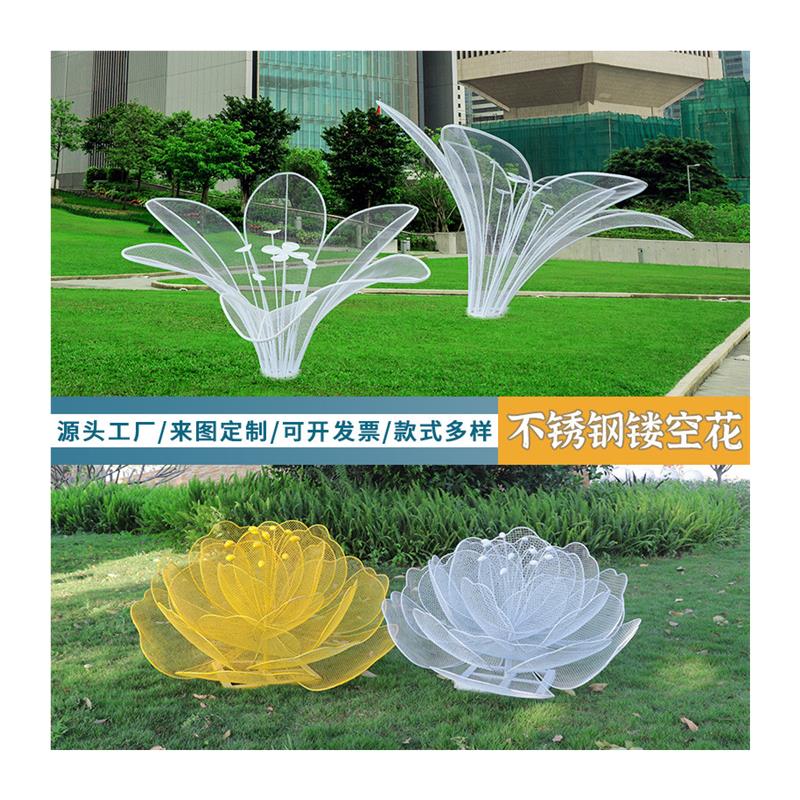 不锈钢镂空花朵雕塑户外植物草坪玫瑰花蘑菇摆件创意景观美陈装饰