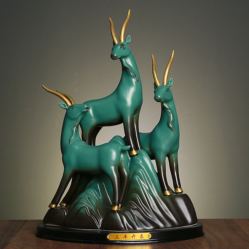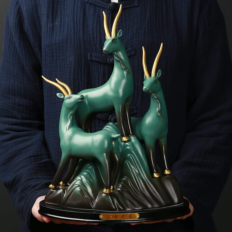 三阳开泰生肖羊吉祥物陶瓷客厅装饰家居工艺品开业礼品三羊开泰