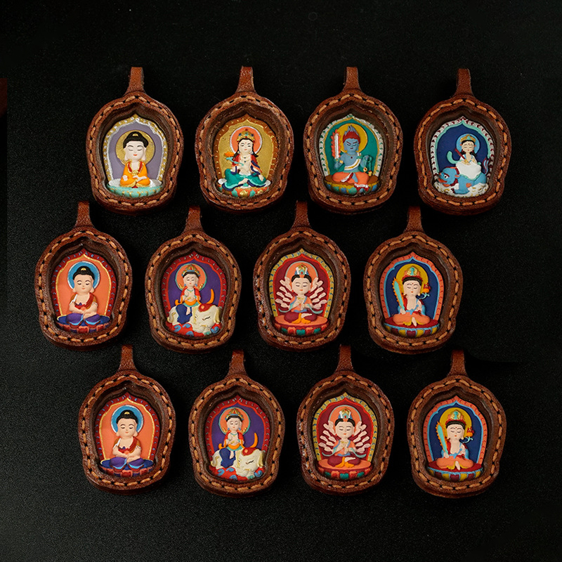 藏式吊坠唐卡擦擦像绿度母扎基拉姆黄财药师五爷宝宝佛随身小挂件