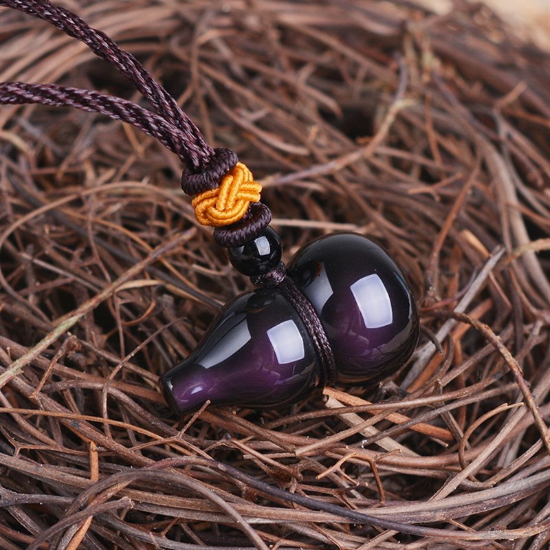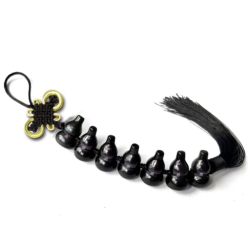2025天然黑曜石葫芦真品家v居挂件吊坠6个7个黑色水晶北方七赤破