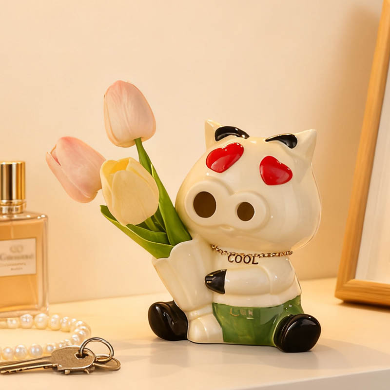 北欧ins花瓶陶瓷可爱猪猪摆件客厅插花装饰家居软装摆设乔迁礼物