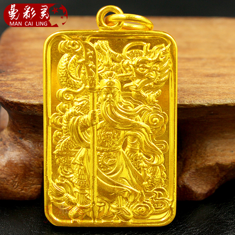 越南沙金关公吊坠男义薄云天关二爷挂坠镀黄金亮面关羽牌子送朋友