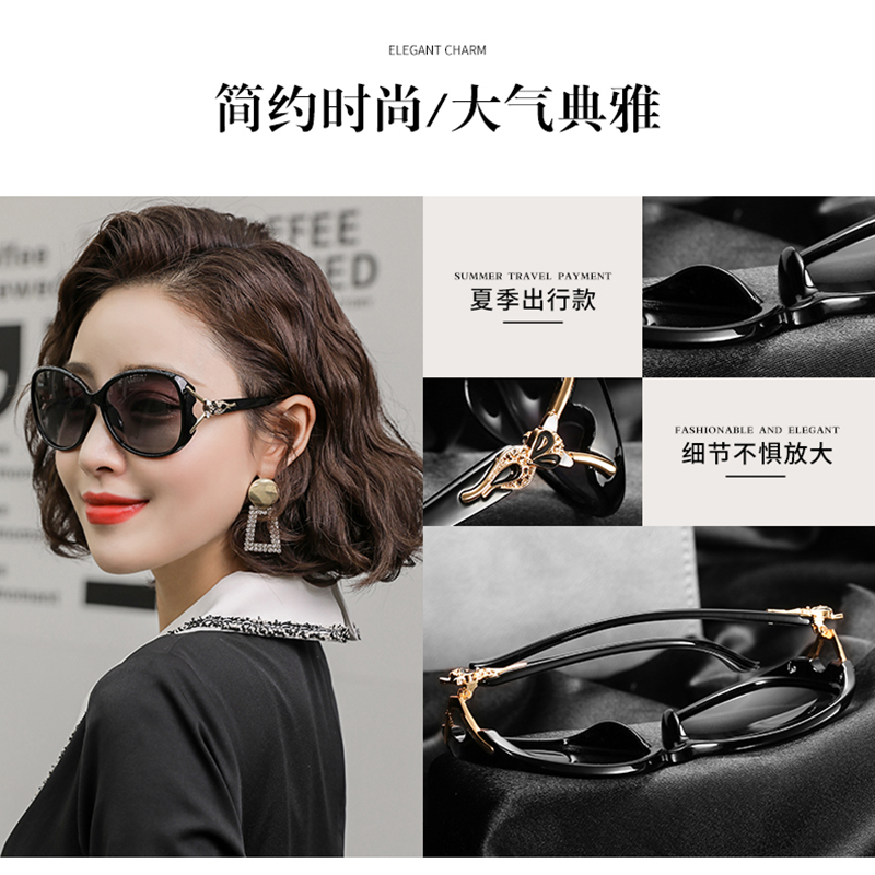 墨镜女士优雅时尚偏光太阳眼镜圆脸大脸显瘦镶钻太阳镜女防紫外线