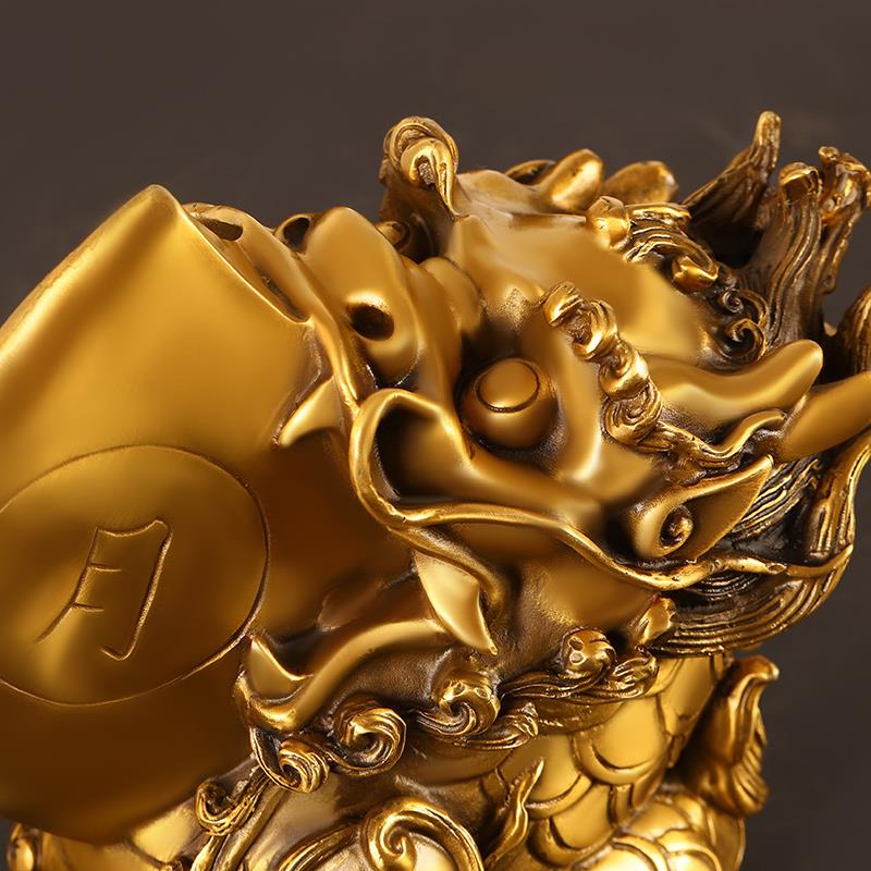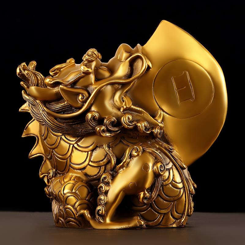 铜日月睚眦摆件 家居玄关日月神兽一对 客厅卧室桌面狮咬剑装饰品