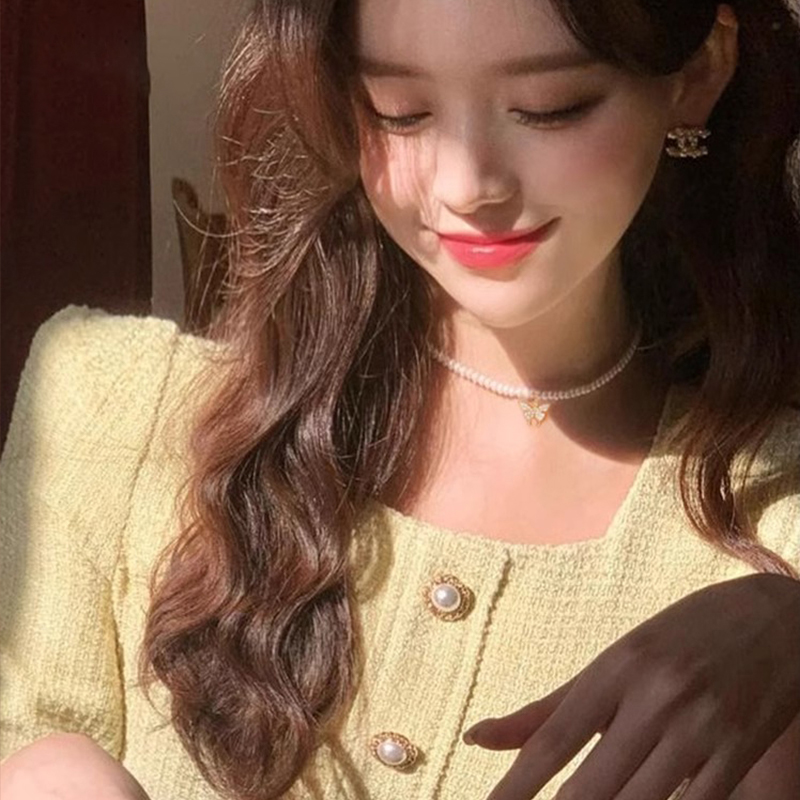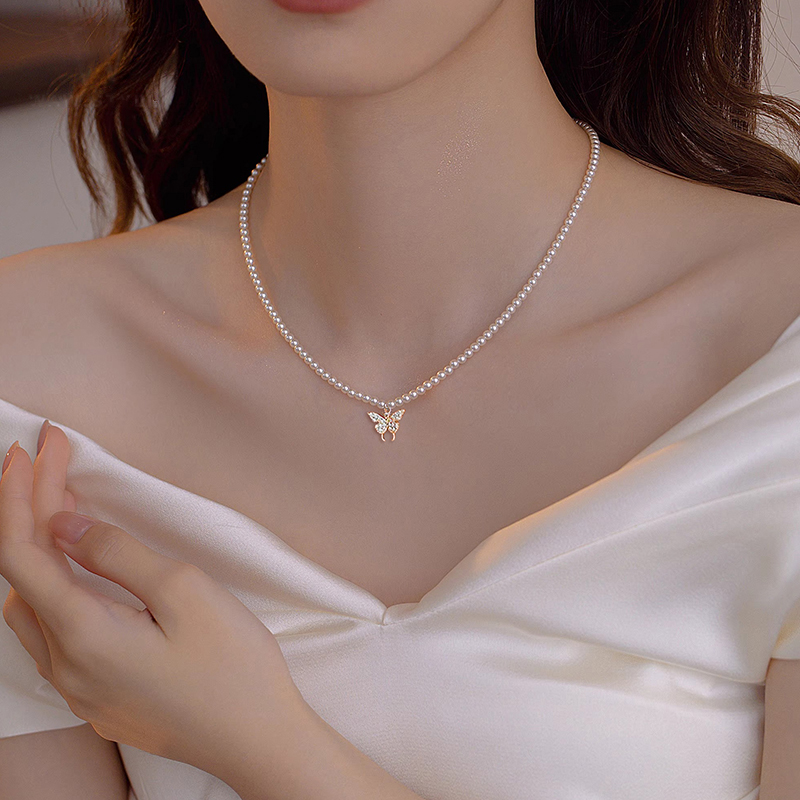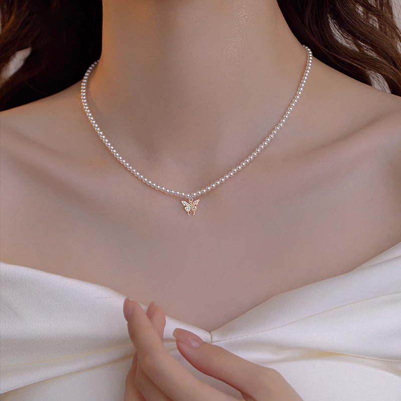 蝴蝶吊坠小米珠仿珍珠项链女2025新爆款配饰高级轻奢小众锁骨颈链