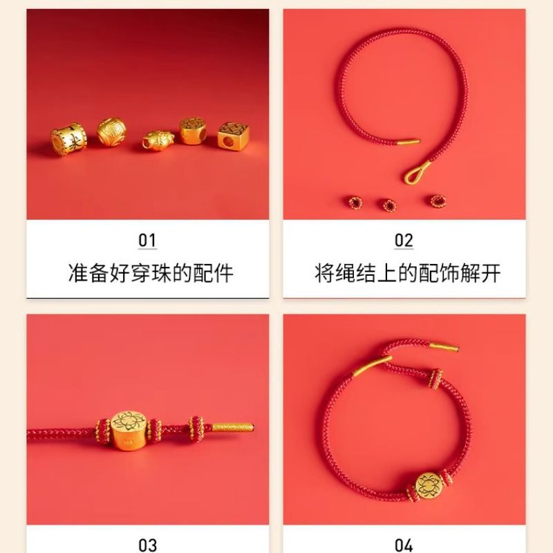 半成品手绳可串珠黄金珠DIY手工编织男女本命年红色手绳情侣手链