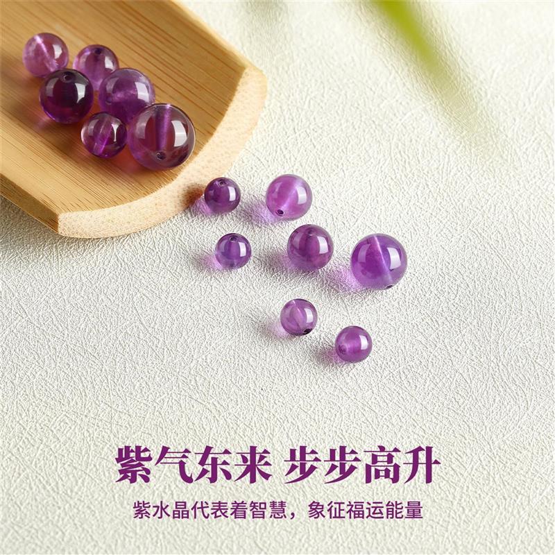 天然乌拉圭紫水晶散珠圆珠串珠手串半成品配件紫色单珠子手链