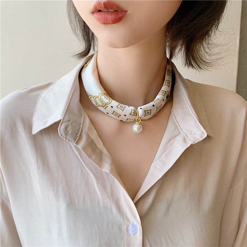 丝巾女高级感百搭护颈配饰锁骨链时尚串珠珍珠衬衫项链挂件围巾