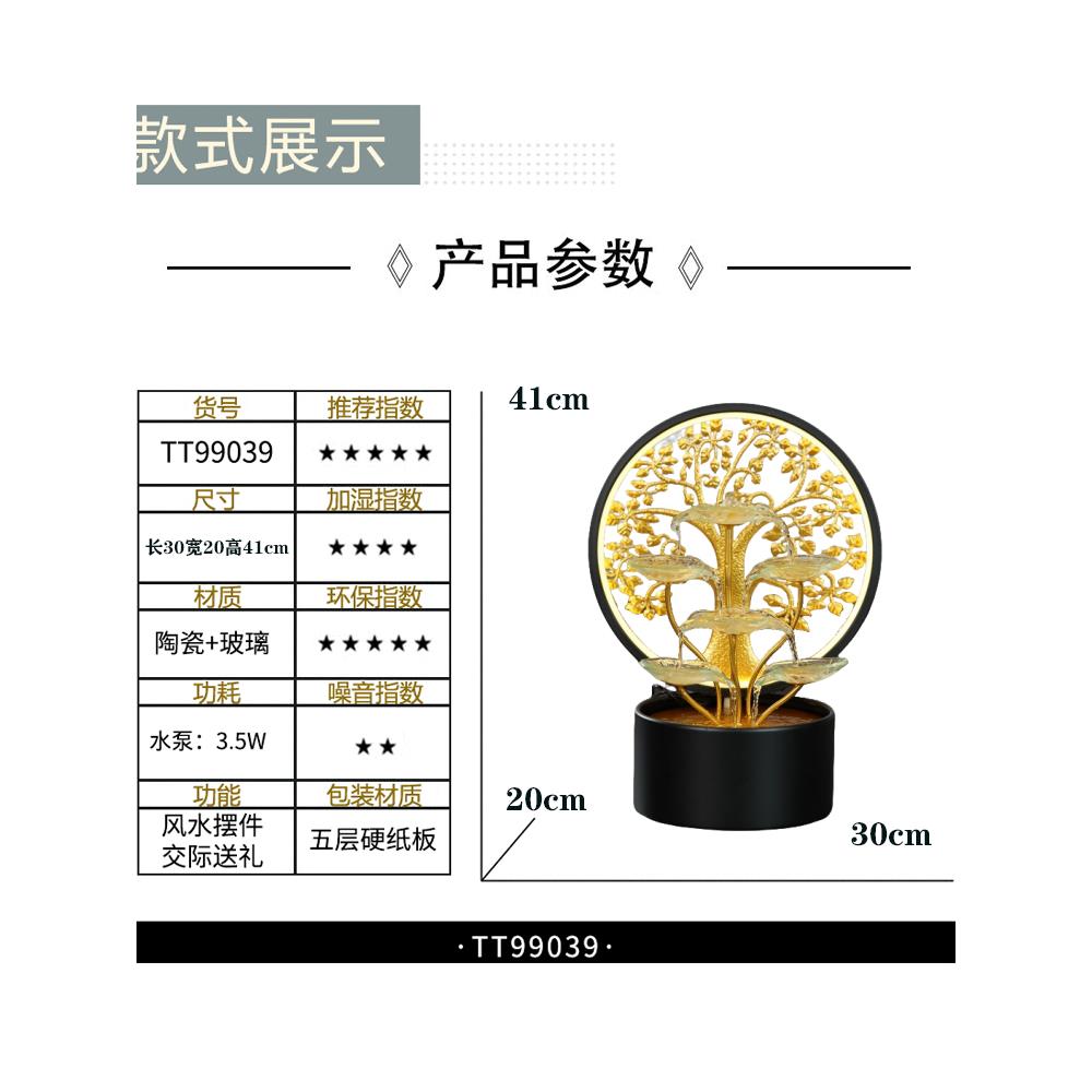 喷泉流水摆件循环水招财客厅小型桌面电视柜装饰造景风水轮礼物