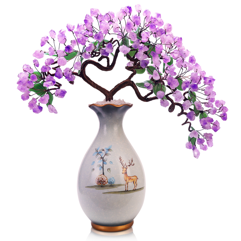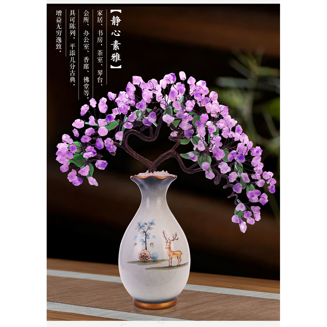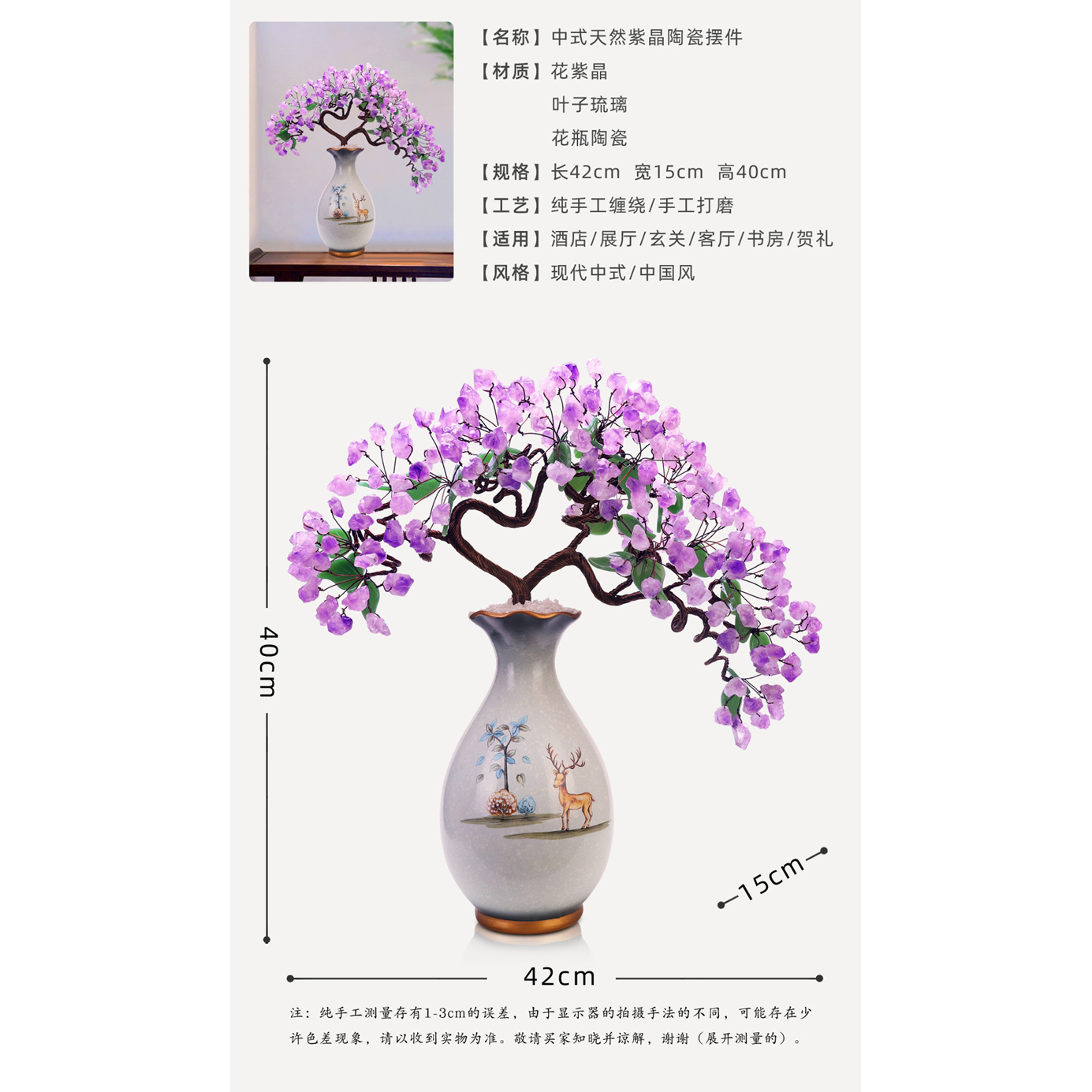 天然玉器紫水晶法式新中式古典茶楼装饰品客厅玄关床头柜鞋柜摆件