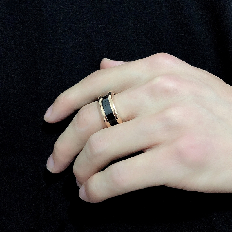 装饰宽版黑陶瓷戒指女潮男v潮牌单身戒个性男士高级感食指环大码