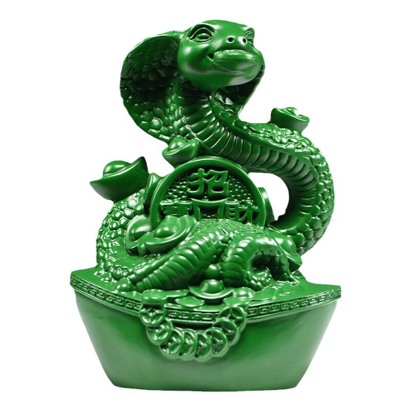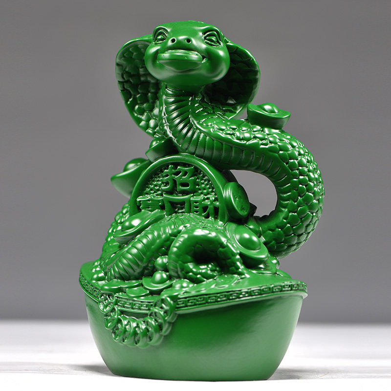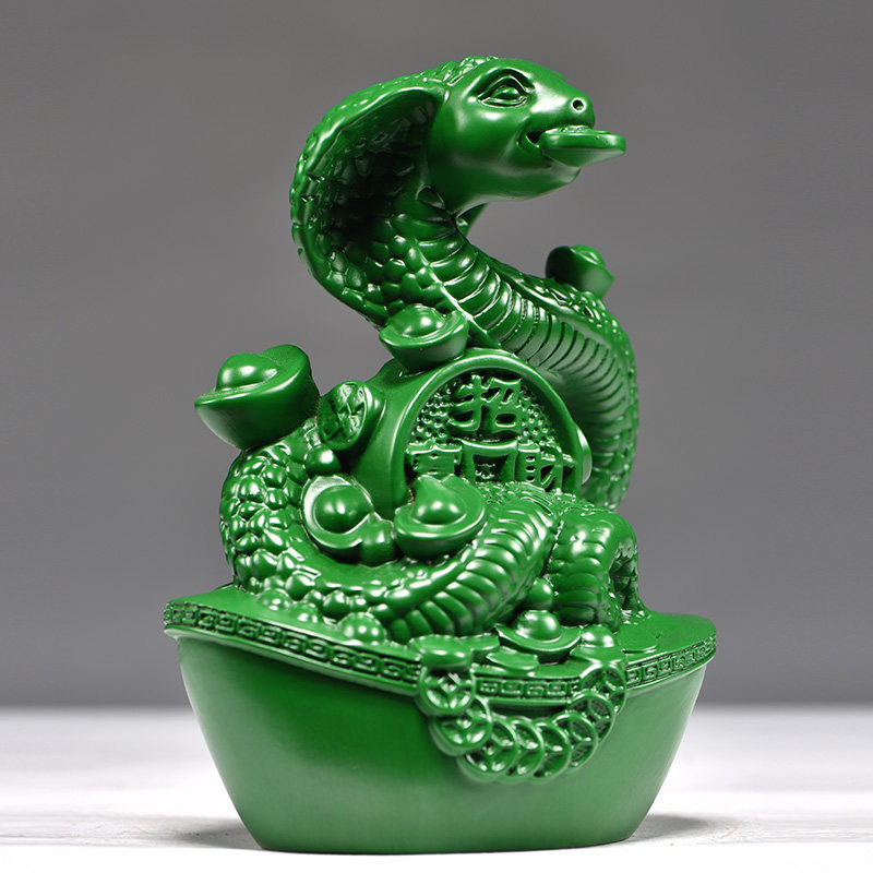 绿色木雕蛇摆件实木蛇生肖木制眼镜蛇家居客厅装饰送礼红木工艺品