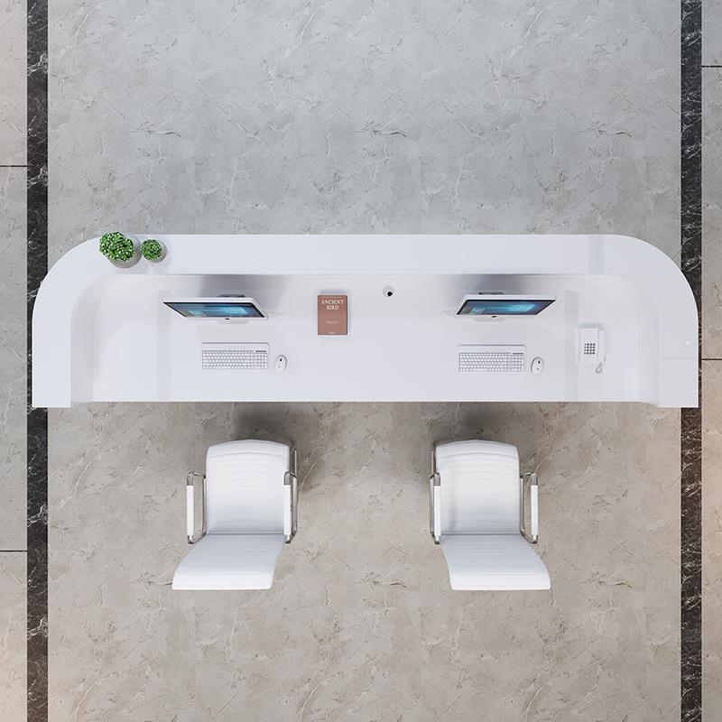 白色烤漆前台桌公司接待台办公桌弧形吧台咨询台简约现代收银柜台
