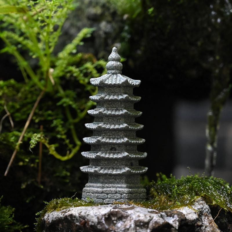 创意仿真石狮子摆件DIY微景观石柱造景流水假山盆景鱼缸配件装饰