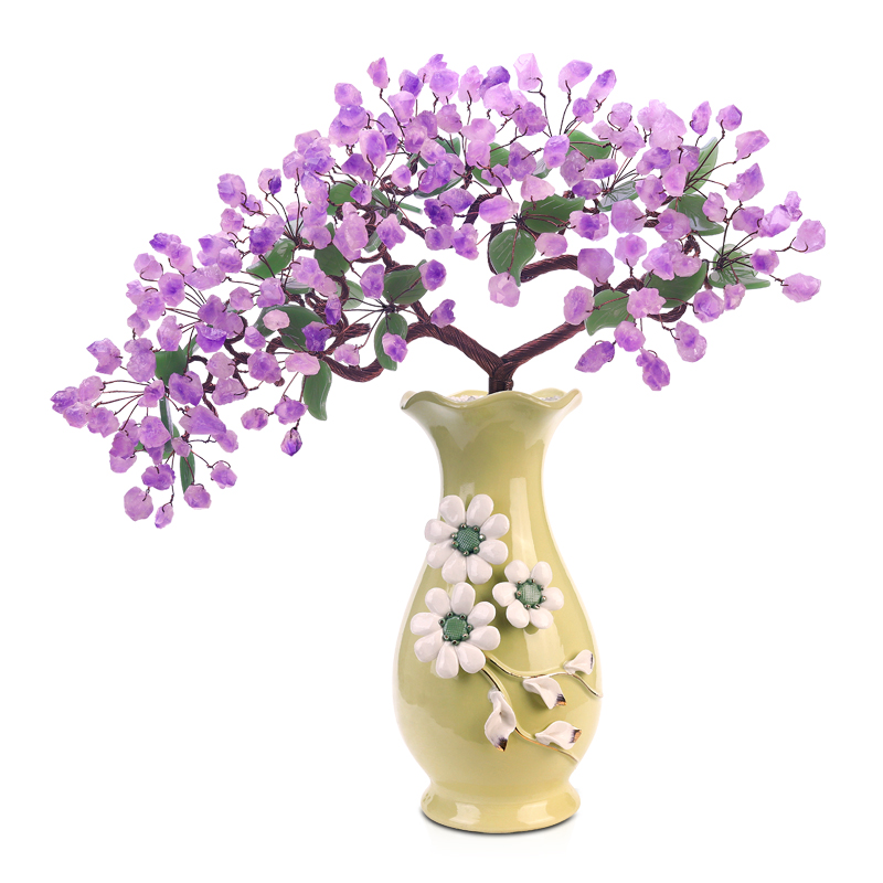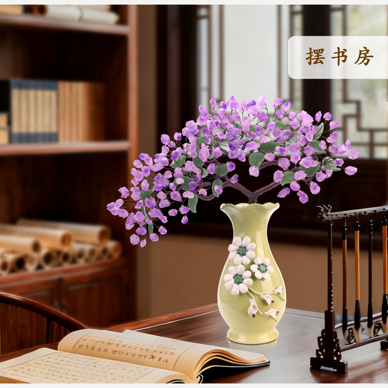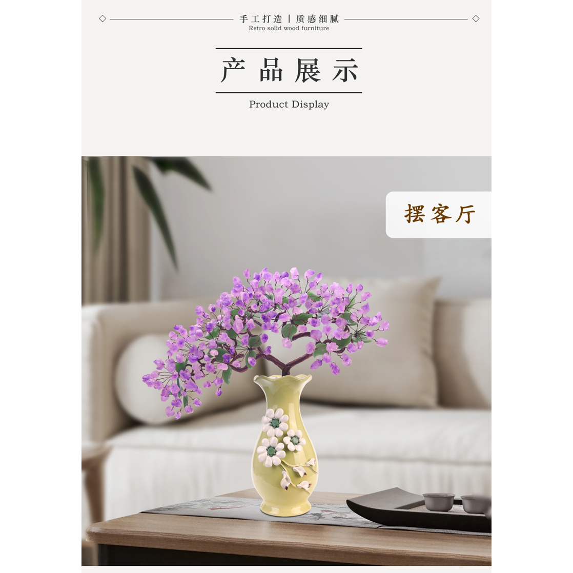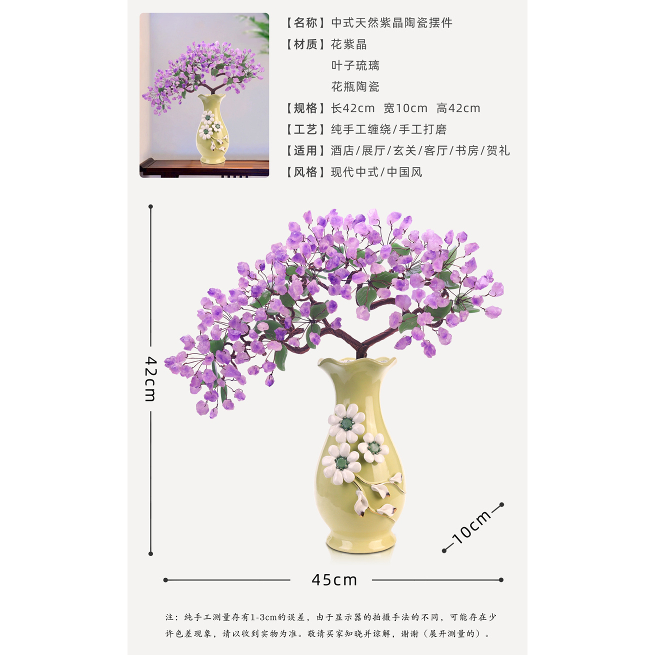 天然玉石紫水晶发财树摇钱树玄关酒柜鞋柜床头柜餐桌玉器轻奢摆件