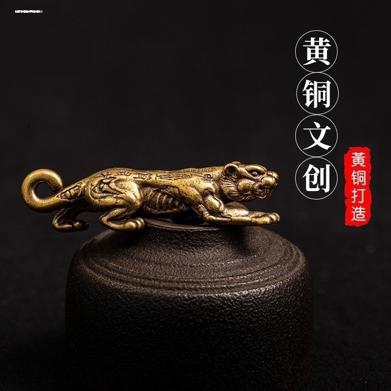 钥匙扣兵符虎符信物挂件老虎车钥匙黄铜铜器小铜玩微雕铜件挂饰