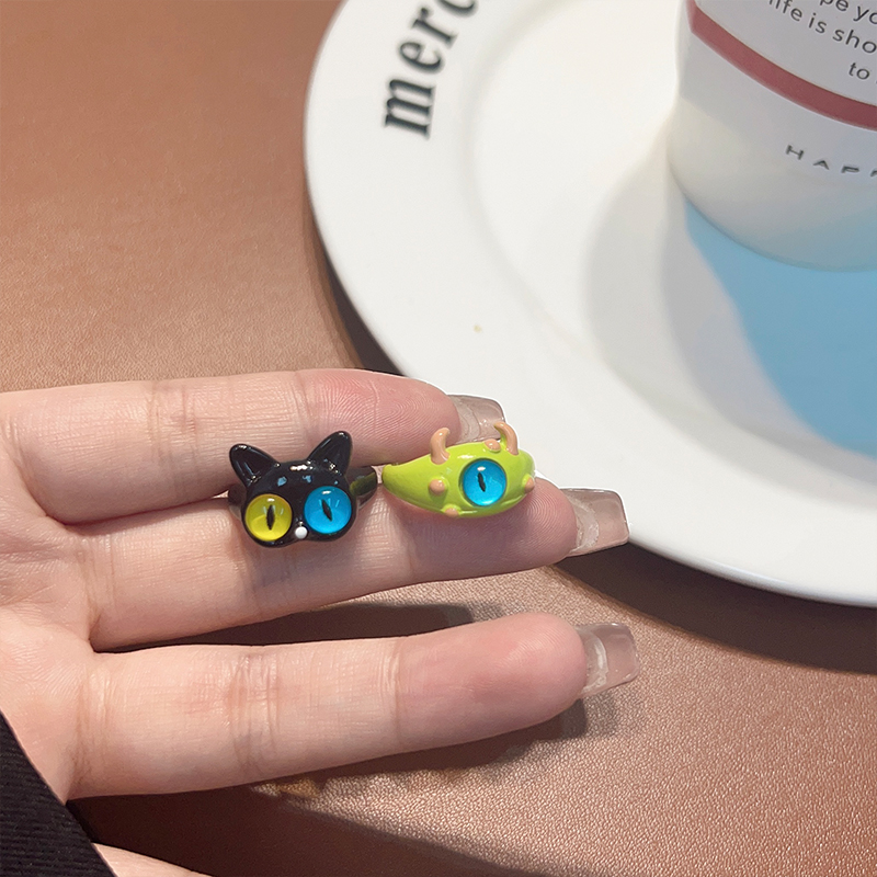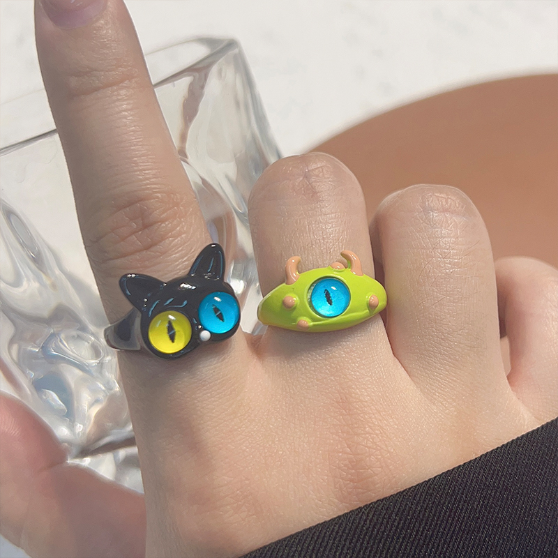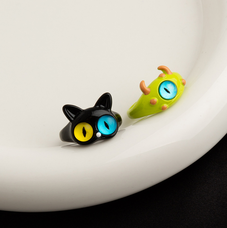 UNBETAEN童趣怪兽猫咪戒指女2025年新款潮个性指环小众设计食指戒