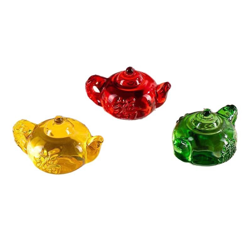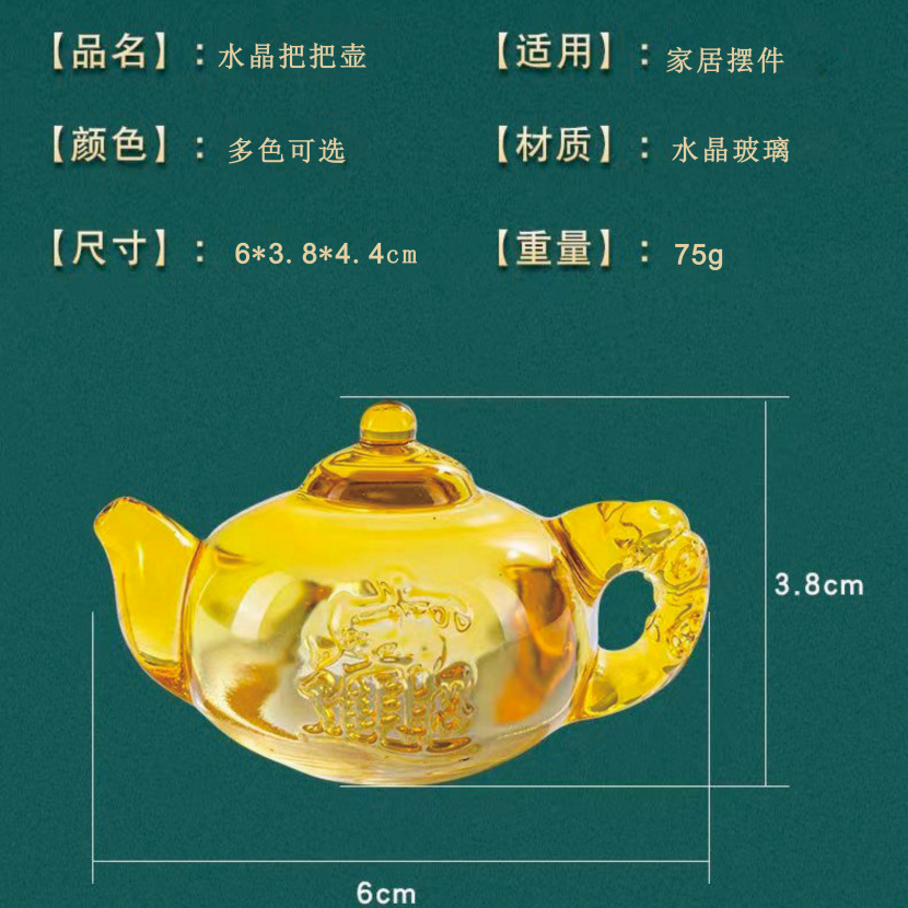 黄水晶把把壶摆件迷你小茶壶文玩手把件礼品家居装饰摆件七彩