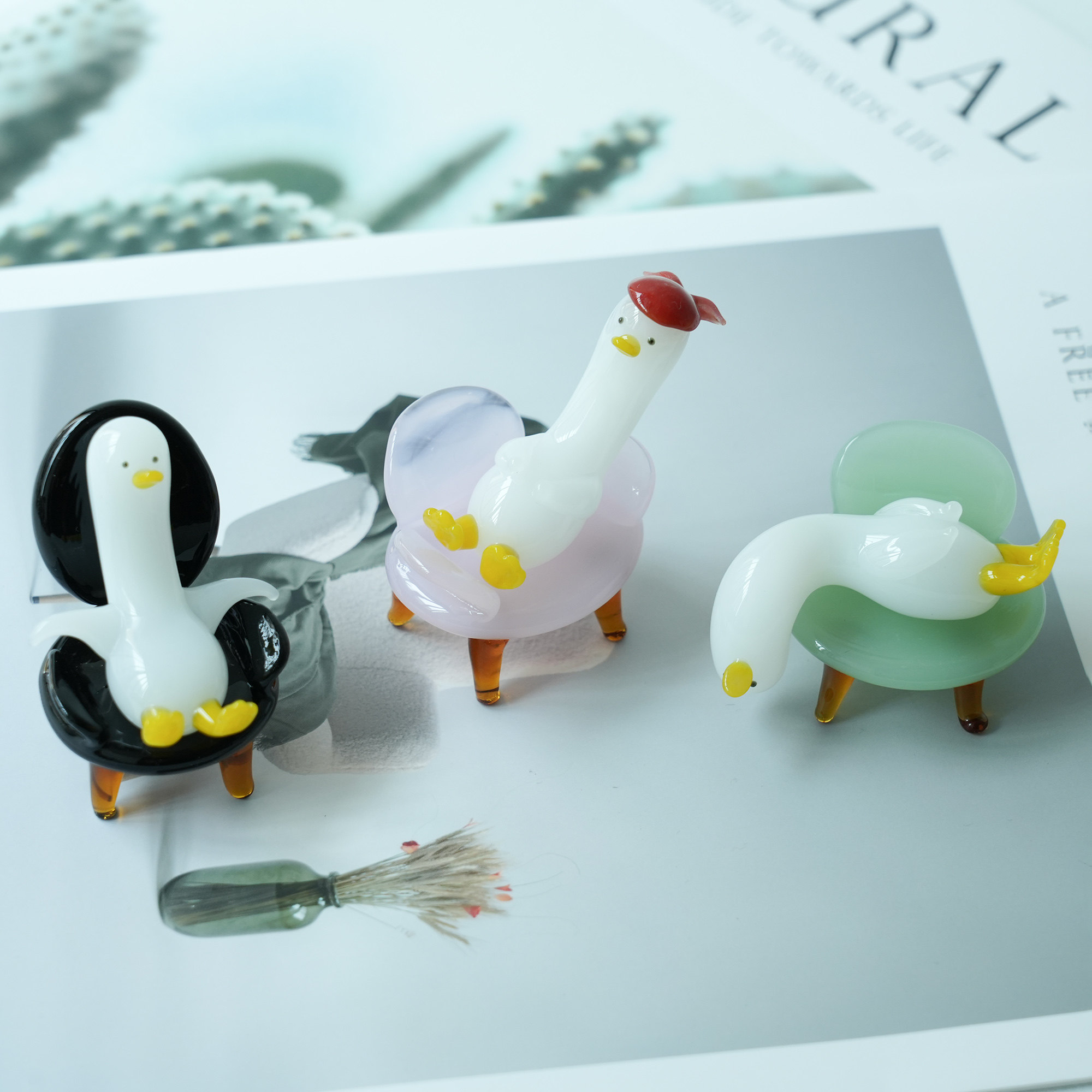 琉璃手作躺平鸭治愈解压桌面小摆件办公室工位鸭子装饰品生日礼物
