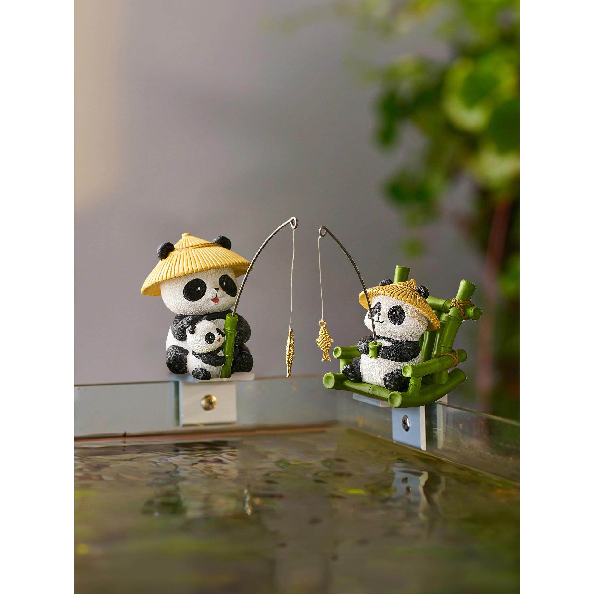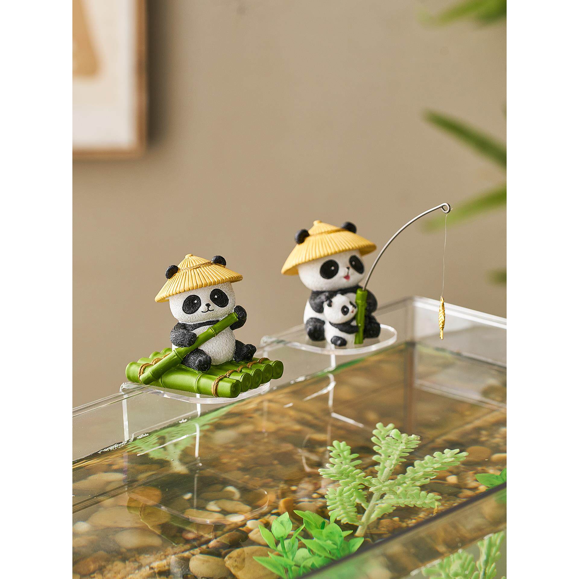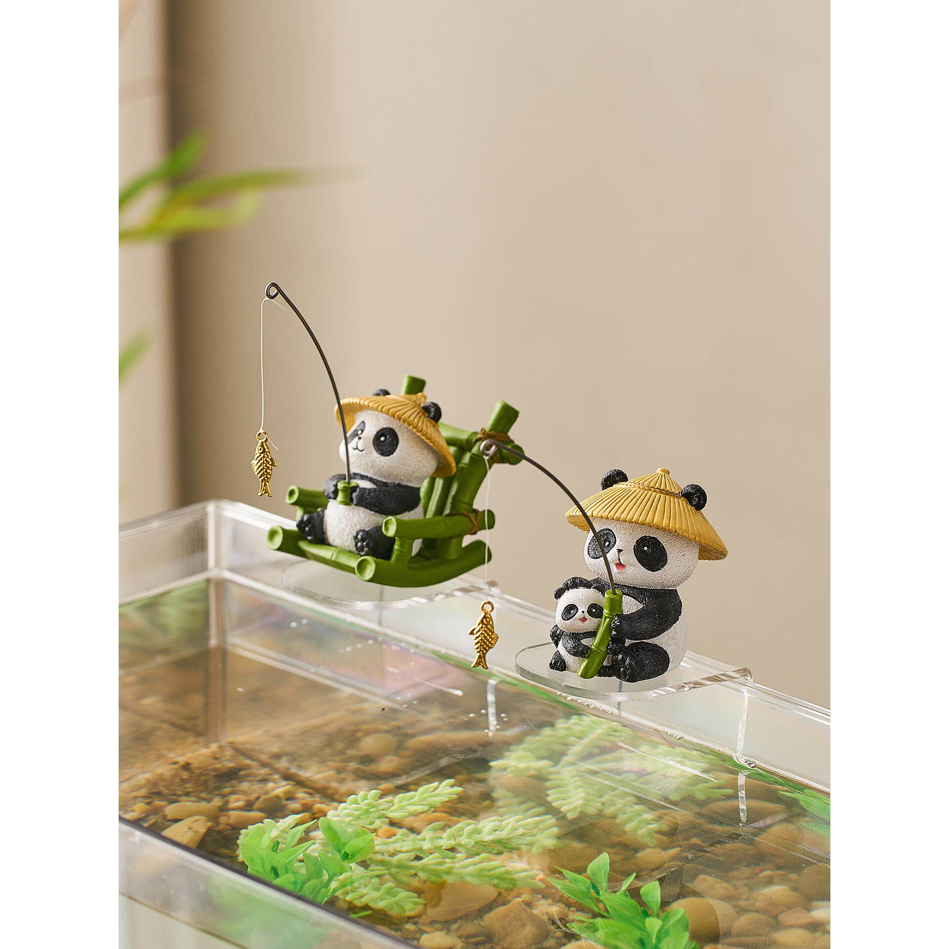 鱼缸装饰造景摆件全套熊猫周边钓鱼古法生态乌龟缸边缘装饰品庭院