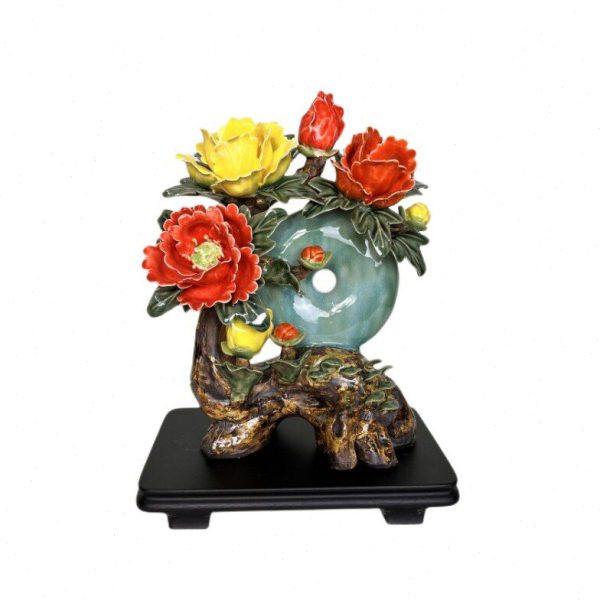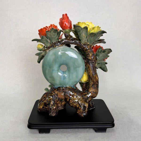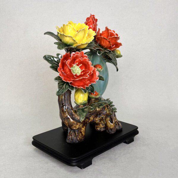 玉璧牡丹花开富贵陶瓷摆件石湾公仔