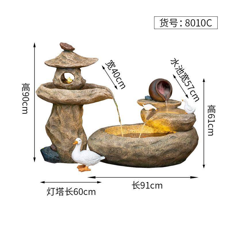田园招财办公室客厅阳台鱼池假山流水喷泉鱼缸循环水景观落地摆件