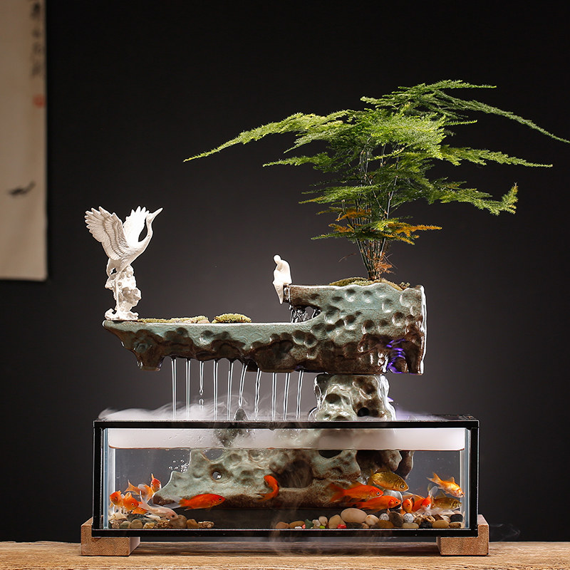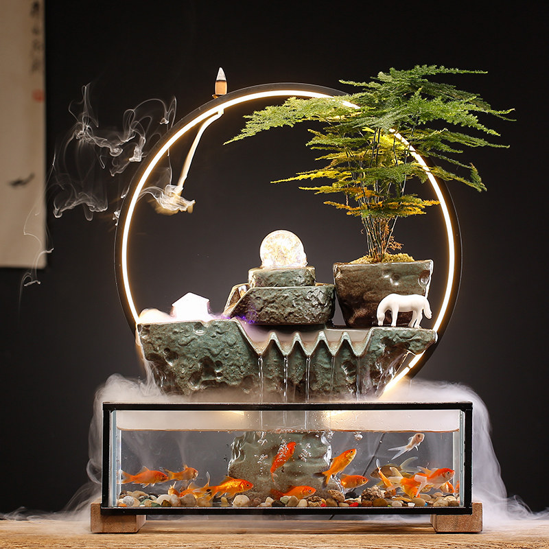 创意流水生财摆件循环水喷泉办公室桌面加湿客厅装饰开业送礼物品