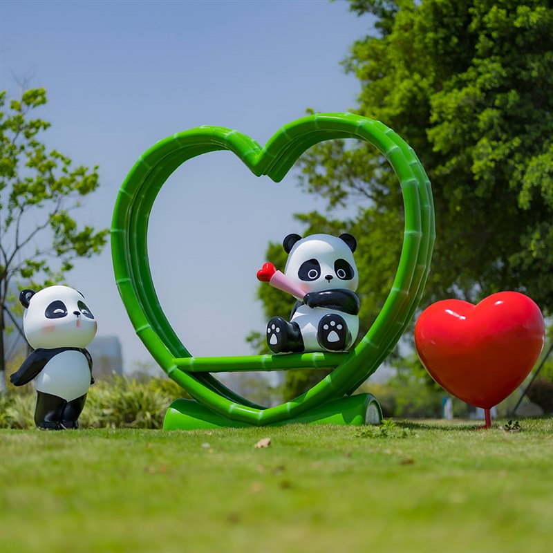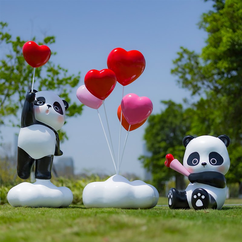 玻璃钢熊猫雕塑卡通动物公仔摆件商场美陈L装饰品户外打卡景观雕