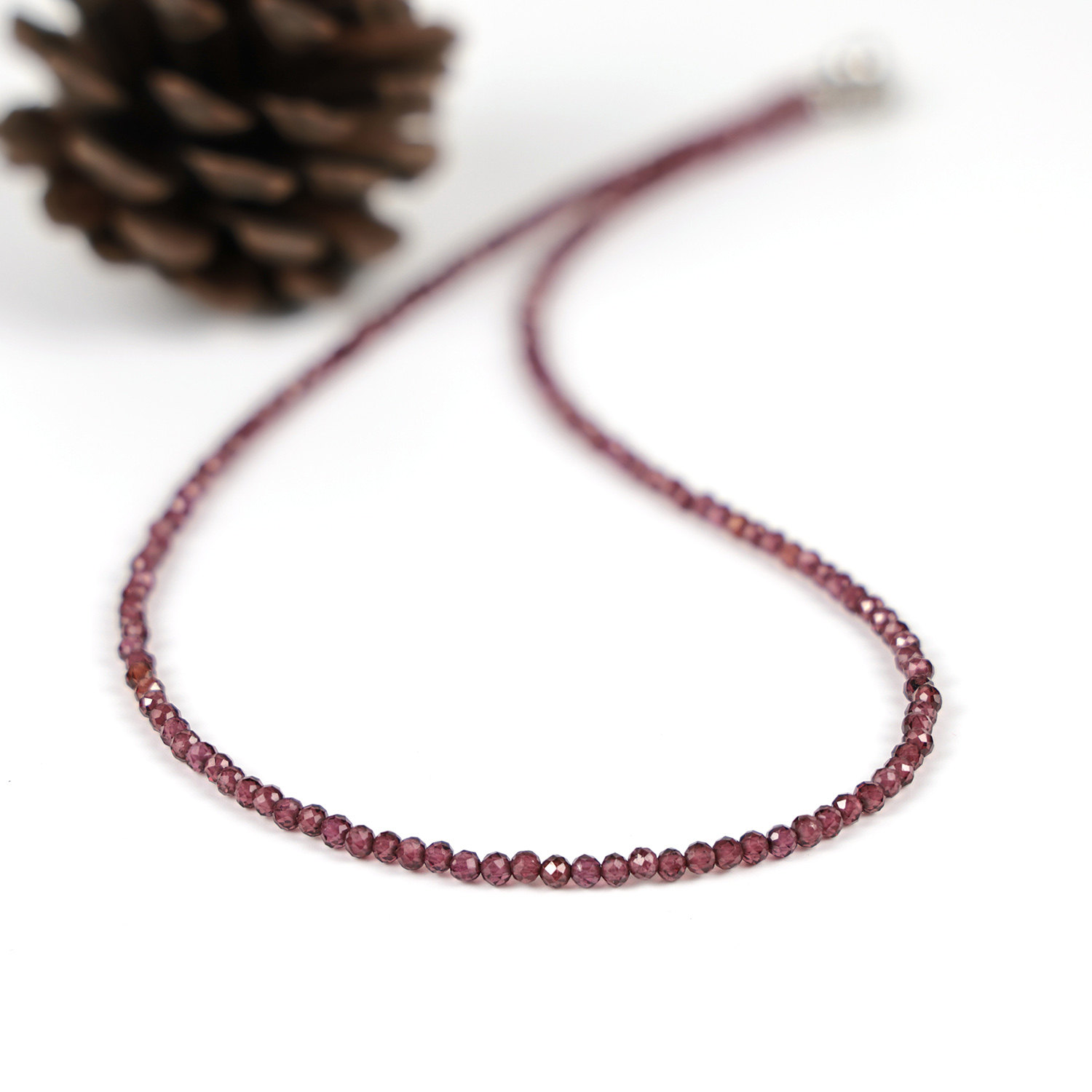 天然紫色石榴石项链磁扣锁骨链新中式紫牙乌小米珠choker