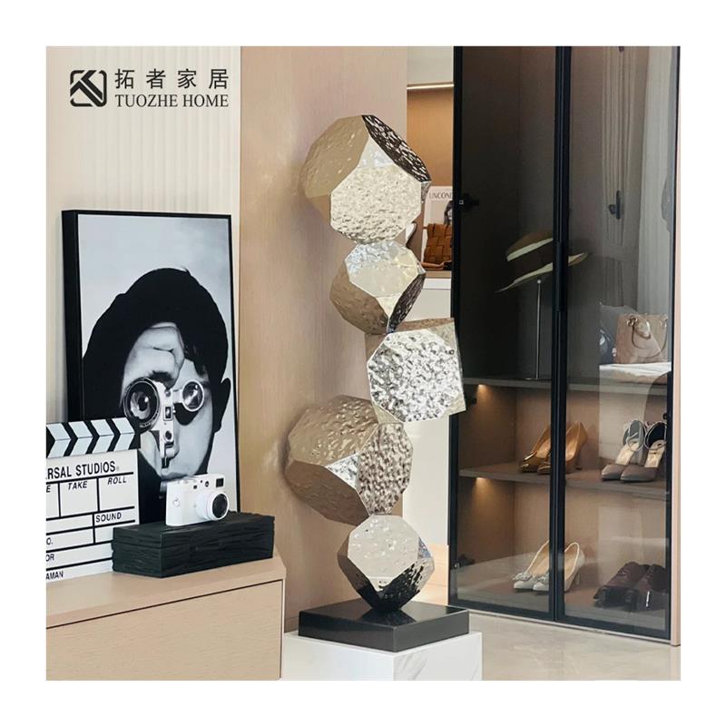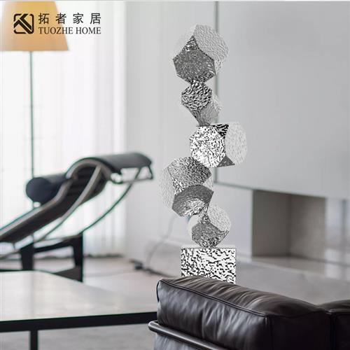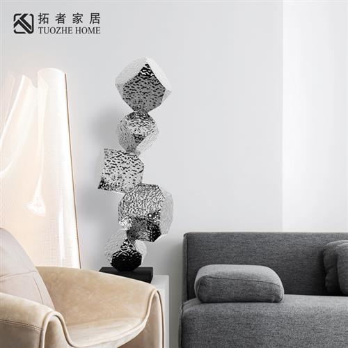 轻奢简约不锈钢落地雕塑酒店样板间现代客厅玄关装饰高端软装摆件