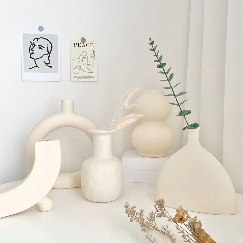 ins侘寂风陶瓷花瓶摆件客厅插干花小众高级感民宿酒柜家居装饰品