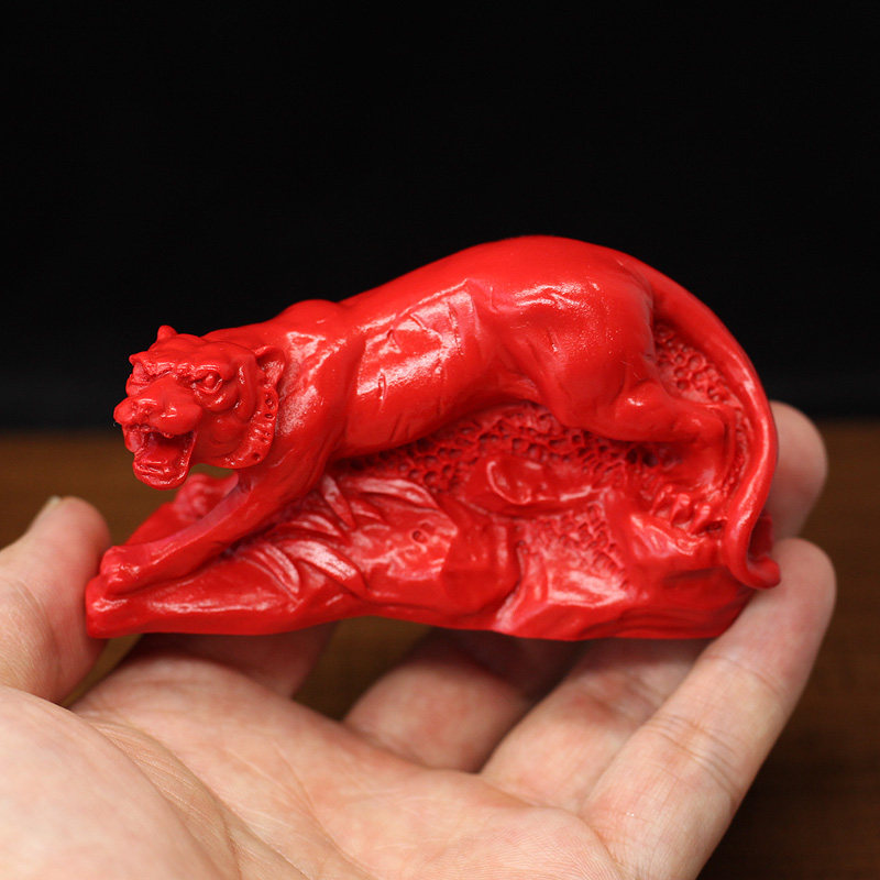 红色朱砂寅午戌三合贵人摆件12生肖虎马狗三合工艺品办公室装饰品