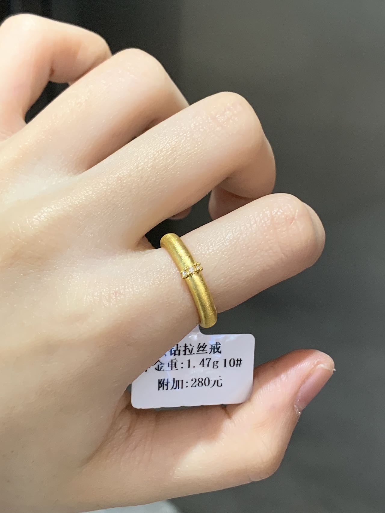 水贝足金999点钻拉丝满钻连珠戒指2025新款5D小众设计感食指戒