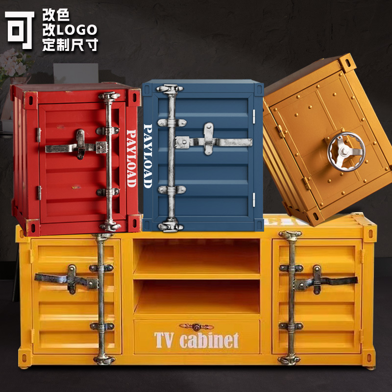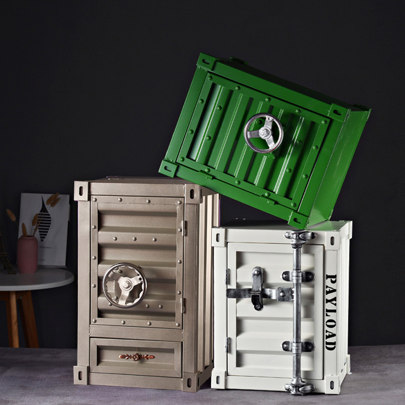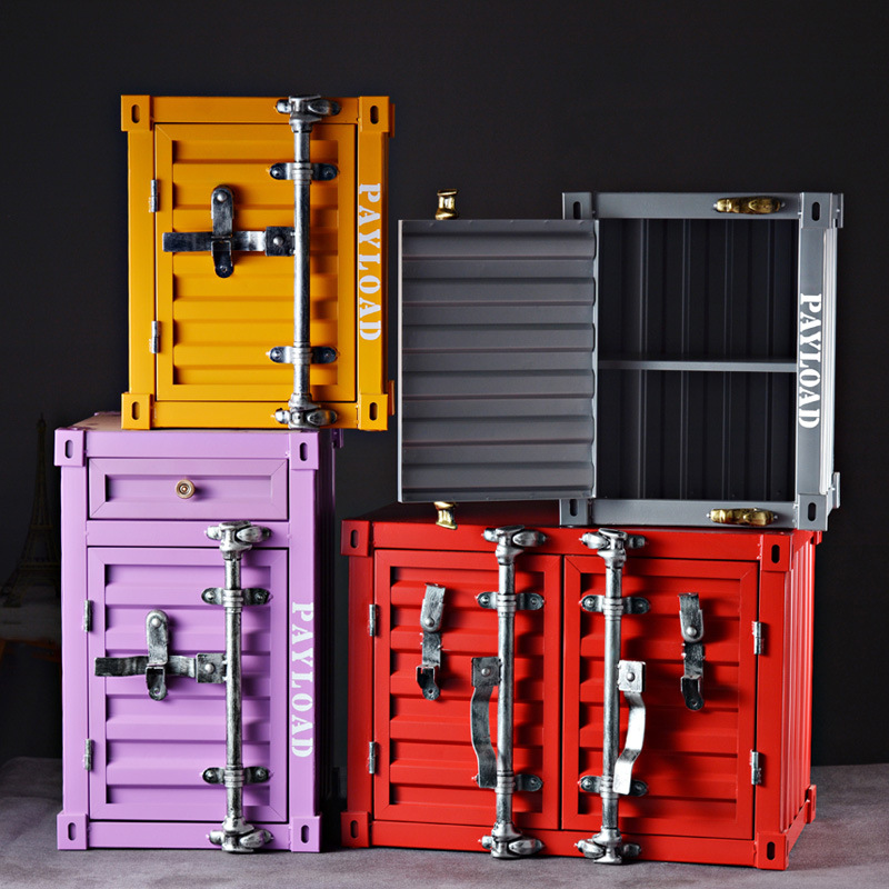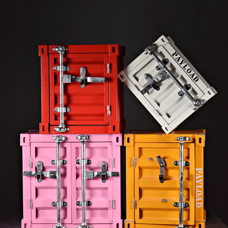 工业风集装箱柜子收纳柜铁艺牀头柜复古创意带锁带抽屉小型收纳柜