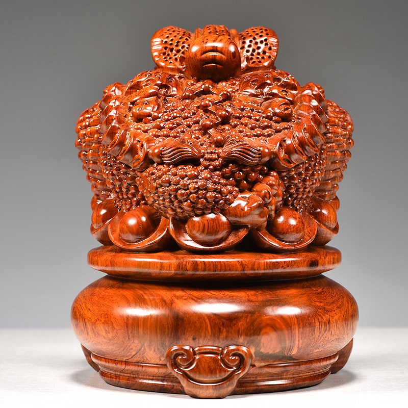 花梨木雕金蟾摆件家居客厅店铺开业办公送礼收银台金蟾实木工艺品