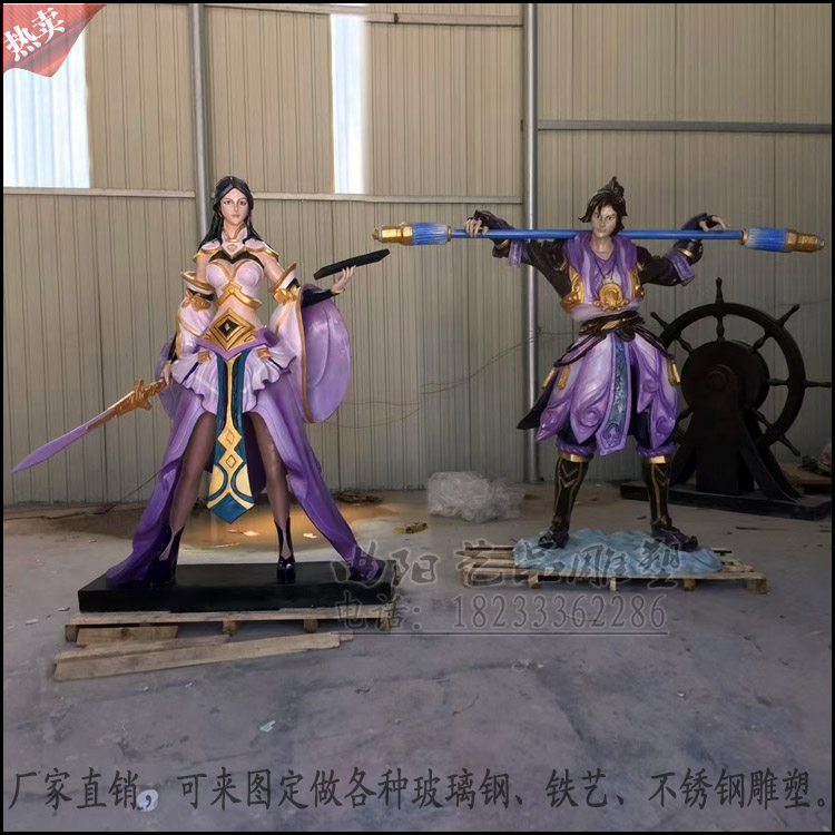 玻璃钢王者荣耀游戏人物雕塑李白王者游戏角色摆件刺客李白雕塑像