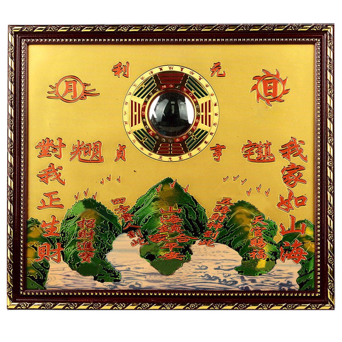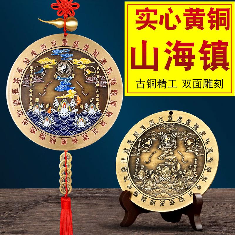 山海镇挂件纯黄铜开桃木镇宅麒麟八卦镜山水画过光大门室内外摆件