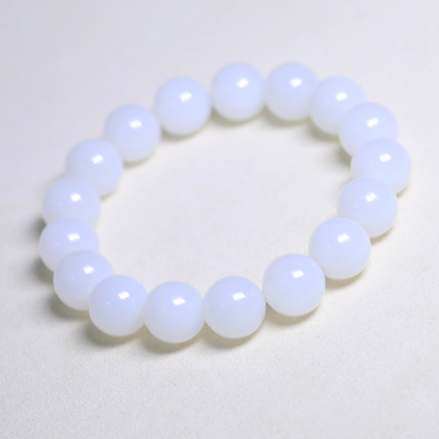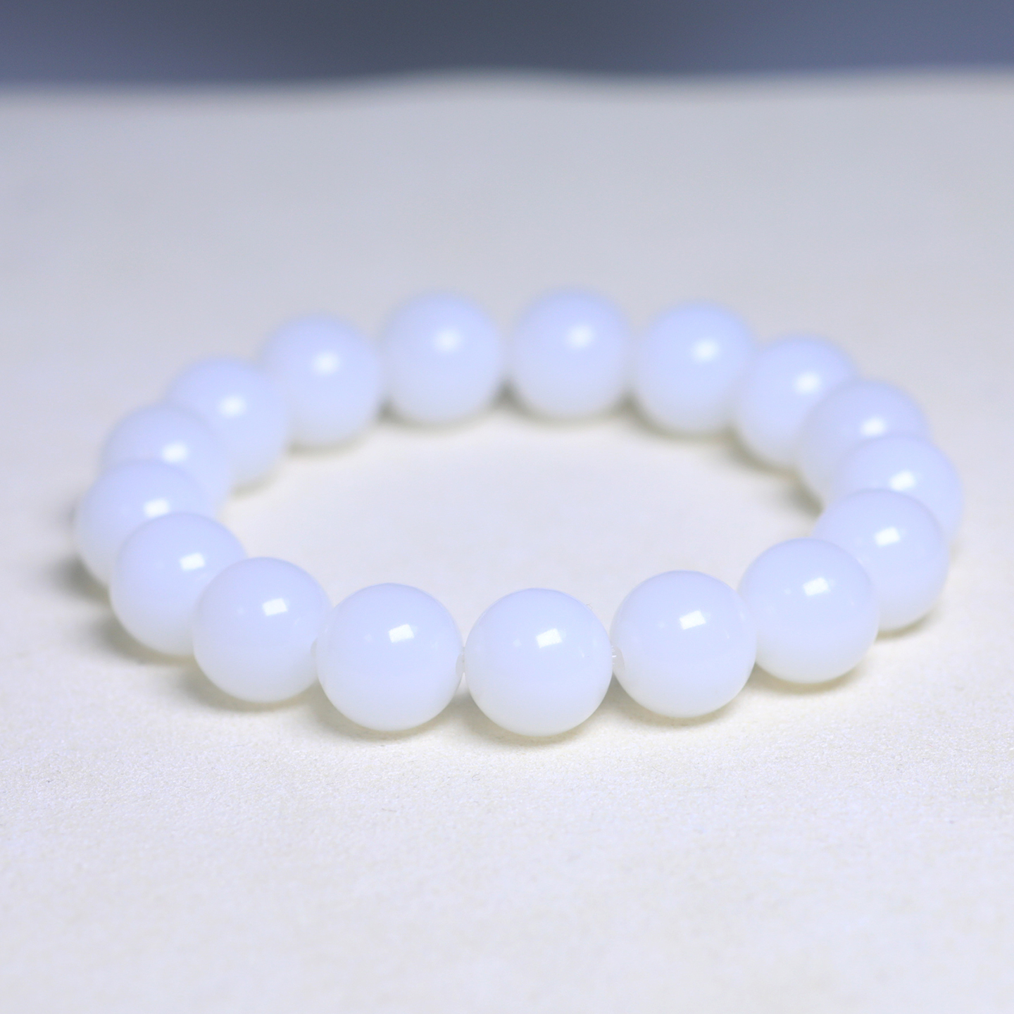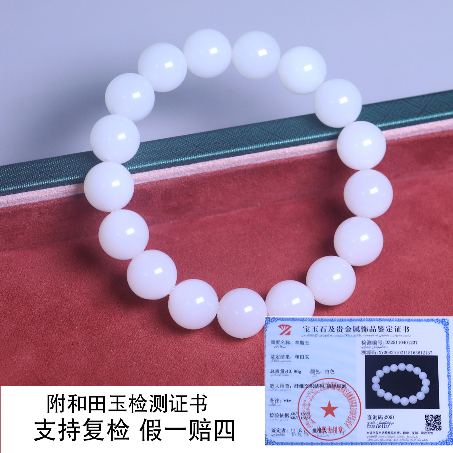 珪宝和田玉羊脂玉圆珠手串男女款山流水玉手链直径12mm天然带证书