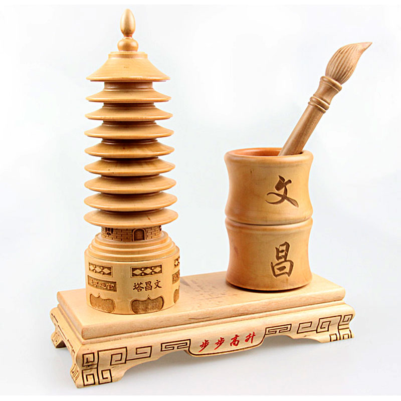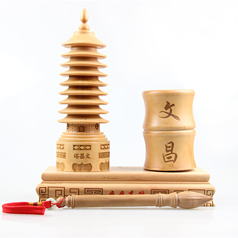 九层桃木文昌塔笔筒雕刻工艺摆件文昌笔筒塔套装送文昌笔