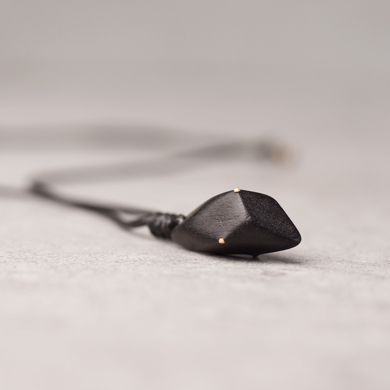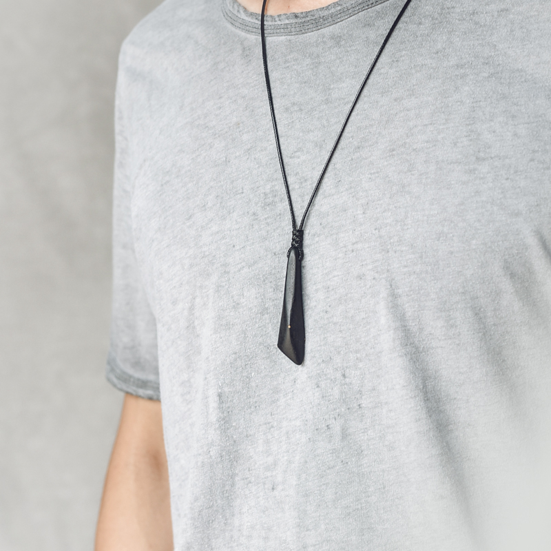 非鱼之家镶铜黑檀木吊坠男 黑色几何切角个性毛衣链 原创设计饰品