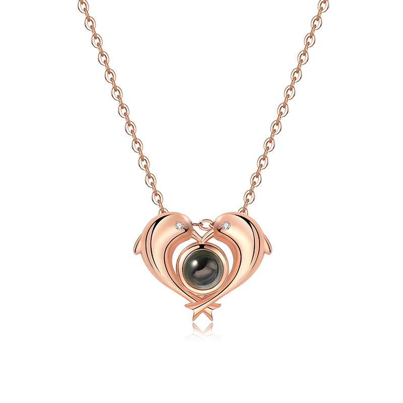 海豚之恋投影项链女纯银潮网红吊坠定制照片刻字圣诞节礼物送女友