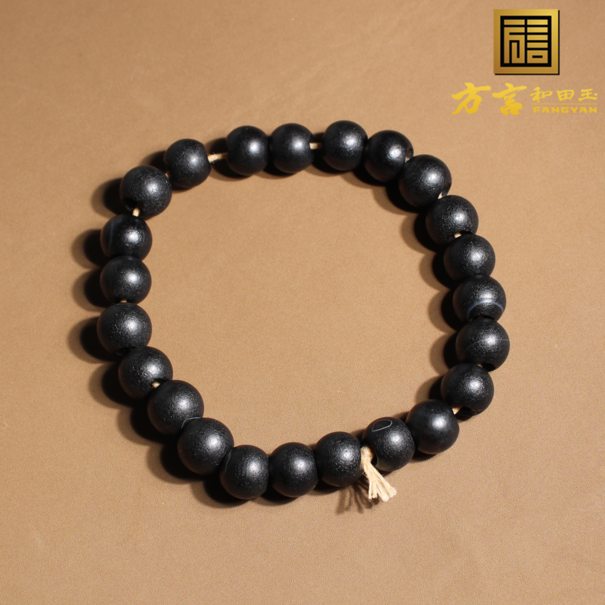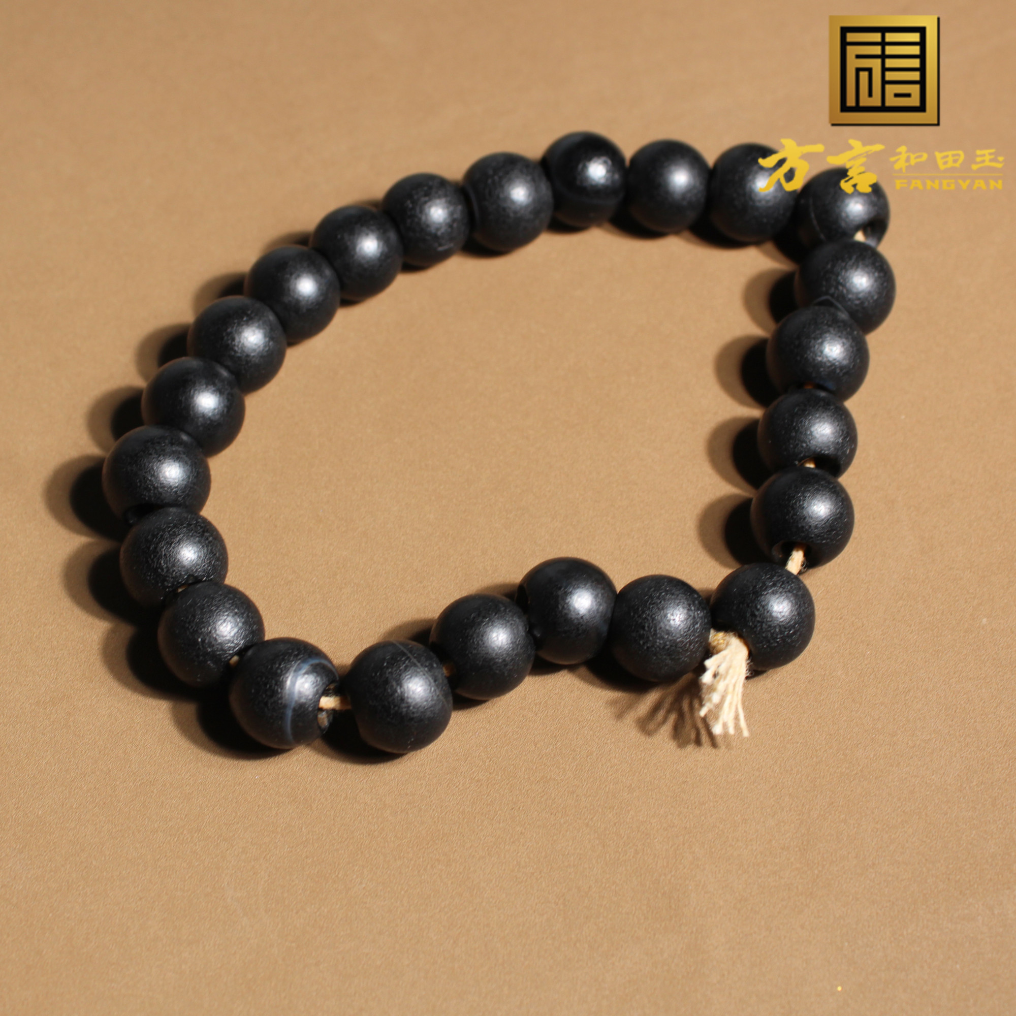 方言和田玉精品放漏阿拉善复古黑色磨砂哑光玛瑙手串简约风手链X5